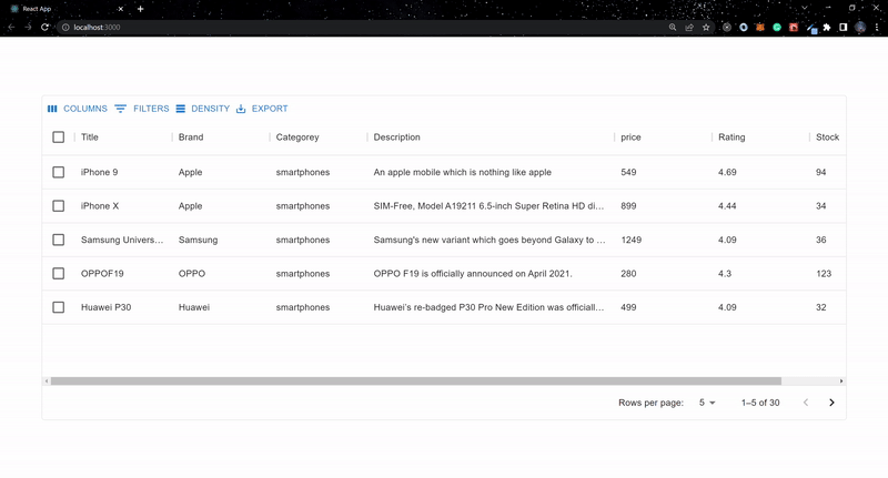 We displayed local and asynchronous data using Material UI Data Grid’s fast and extensible features. We also made use of some of the library’s available functionality.