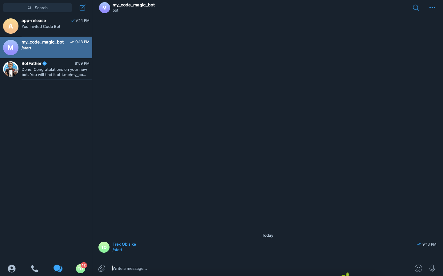 my_code_magic_botlabel at the top of the chat box or click on the...label, then select the info to open the bot’s chat info.